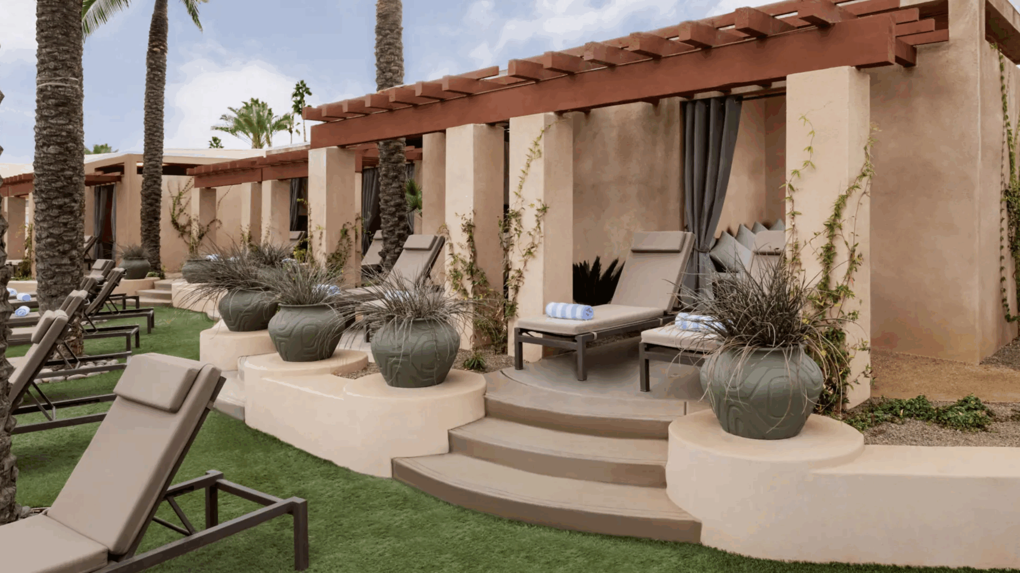 Escape to tranquility at Agua Serena Spa, a serene wellness retreat surrounded by desert palms and mountain views. This adults-only spa invites you to recharge with soothing treatments, private garden patios, and the calming sounds of flowing water.